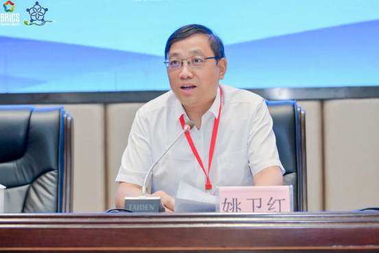 金砖国家工商理事会(中方)技能发展工作组主席、一带一路暨金砖国家技能发展国际联盟理事长、金砖国家技能发展与技术创新大赛组委会主席刘振英博士通过视频形式发表讲话。