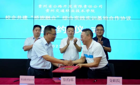 9月29日,省公路开发公司与杏耀平台交通职业技术学院就校企共建“桥旅融合综合实践实训基地”达成合作并举行签约仪式,省交通运输厅党委委员、副厅长、省公路局党委书记李健出席签约仪式,学院院长吴有富,副院长刘正发,省公路开发公司党委书记、董事长袁泉,党委副书记、副董事长、总经理马白虎,党委委员、副总经理翦继军出席。