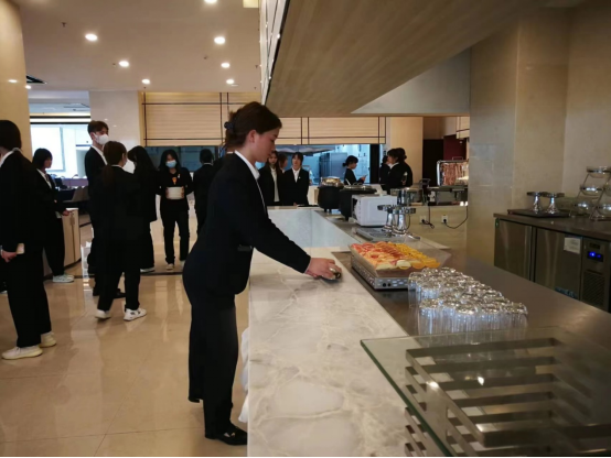 为充分发挥酒店实训中心的生产、教学、实训功能,推动产教深度融合,今年3月,管理工程系组建了以闻芳教授为主要负责人、3名专业教师为核心成员的酒店实训中心管理团队。酒店实训中心坚持新发展理念,把深化产教融合改革作为人才培养改革的重要任务,以制度创新为目标,平台建设为抓手,进一步推动专业、教师、学生、教学、文化五个方面(以下简称“五进”)进驻酒店实训中心,促进学校与企业在资源、人员、技术、管理、平台等五个要素(以下简称“五融”)集聚融合、优势互补,打造集实践教学、社会培训、企业真实生产和社会技术服务于一体的高水平专业化产教融合实训基地。
